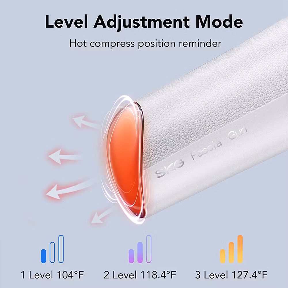 - ✅ Med värmefunktion — massagepistolens värmefunktion har 3 steg: 40 °C för att värma upp dina muskler optimalt, 48 °C för att effektivt minska överflödig mjölksyra i musklerna, 53 °C för att lindra spänningar och smärta i musklerna