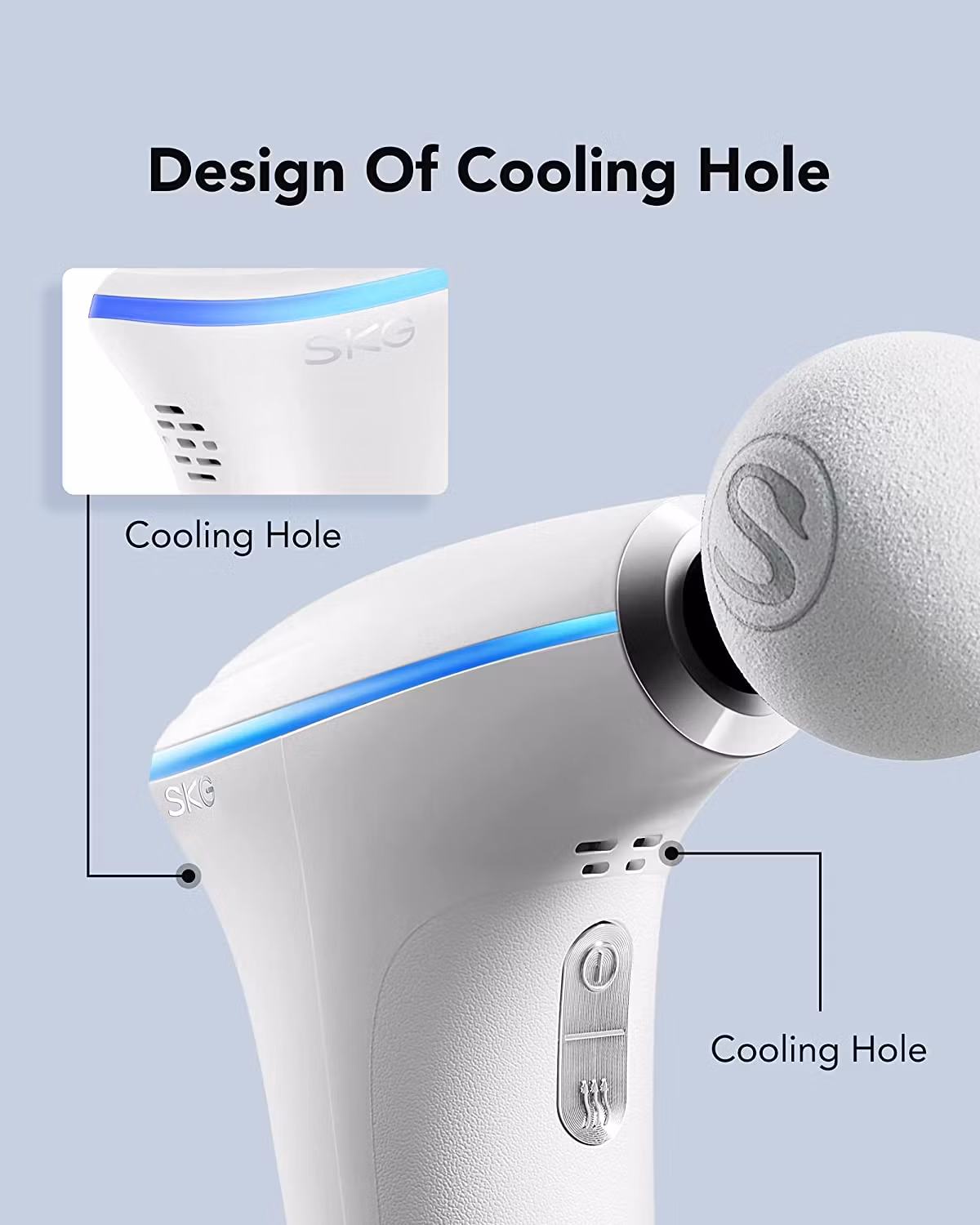 - ✅ Kompakt och kraftfull — med SKG trådlösa muskelmassagepistol kan du koppla av dina stressade muskler när som helst. Den kompakta och praktiska formen, den lätta vikten och den tysta användningen gör den till din perfekta följeslagare. Med en vikt på endast 0,300 kg och den medföljande bärväskan är den bekväm att bära